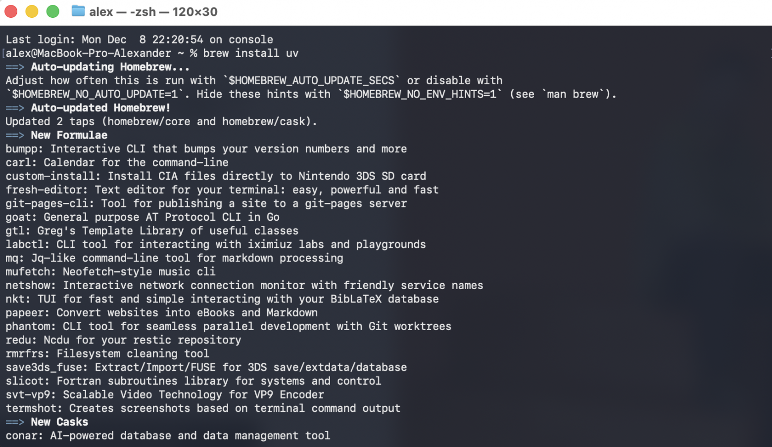 Finam MCP-сервер написан на Python и устанавливается через менеджер пакетов uv.
