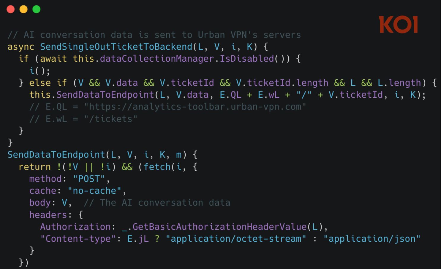 Koi впервые обнаружила сбор данных о переписке в Urban VPN Proxy. Он начался в начале июля с выходом версии 5.5.0. «Медицинские вопросы, финансовые данные, конфиденциальный код, личные проблемы — все это продаётся в целях «”маркетинговой аналитики”», — отмечает компания.
