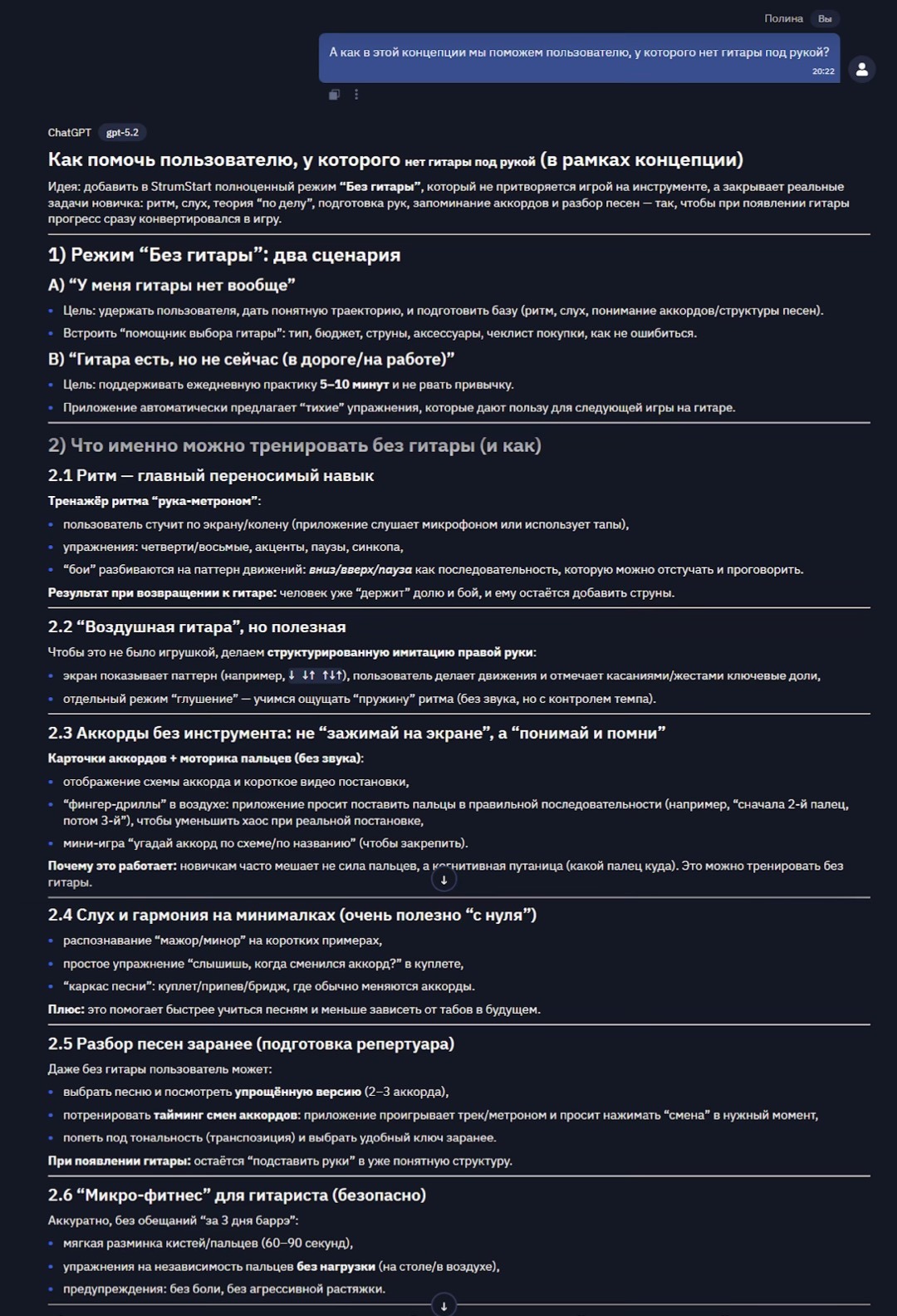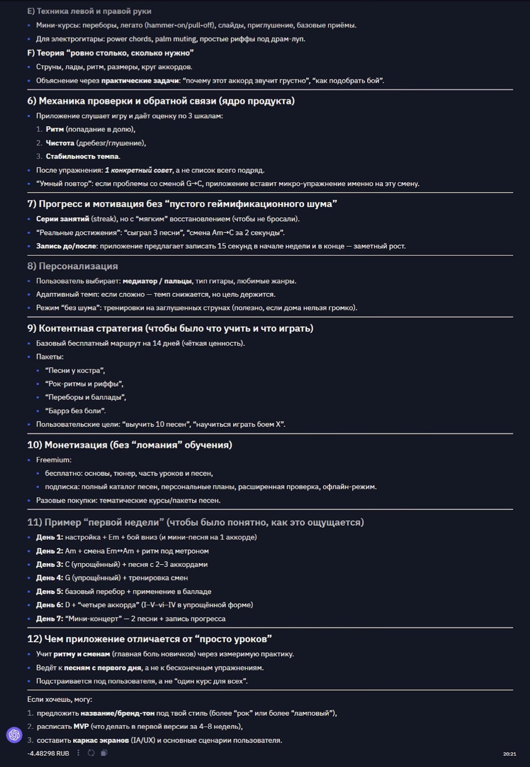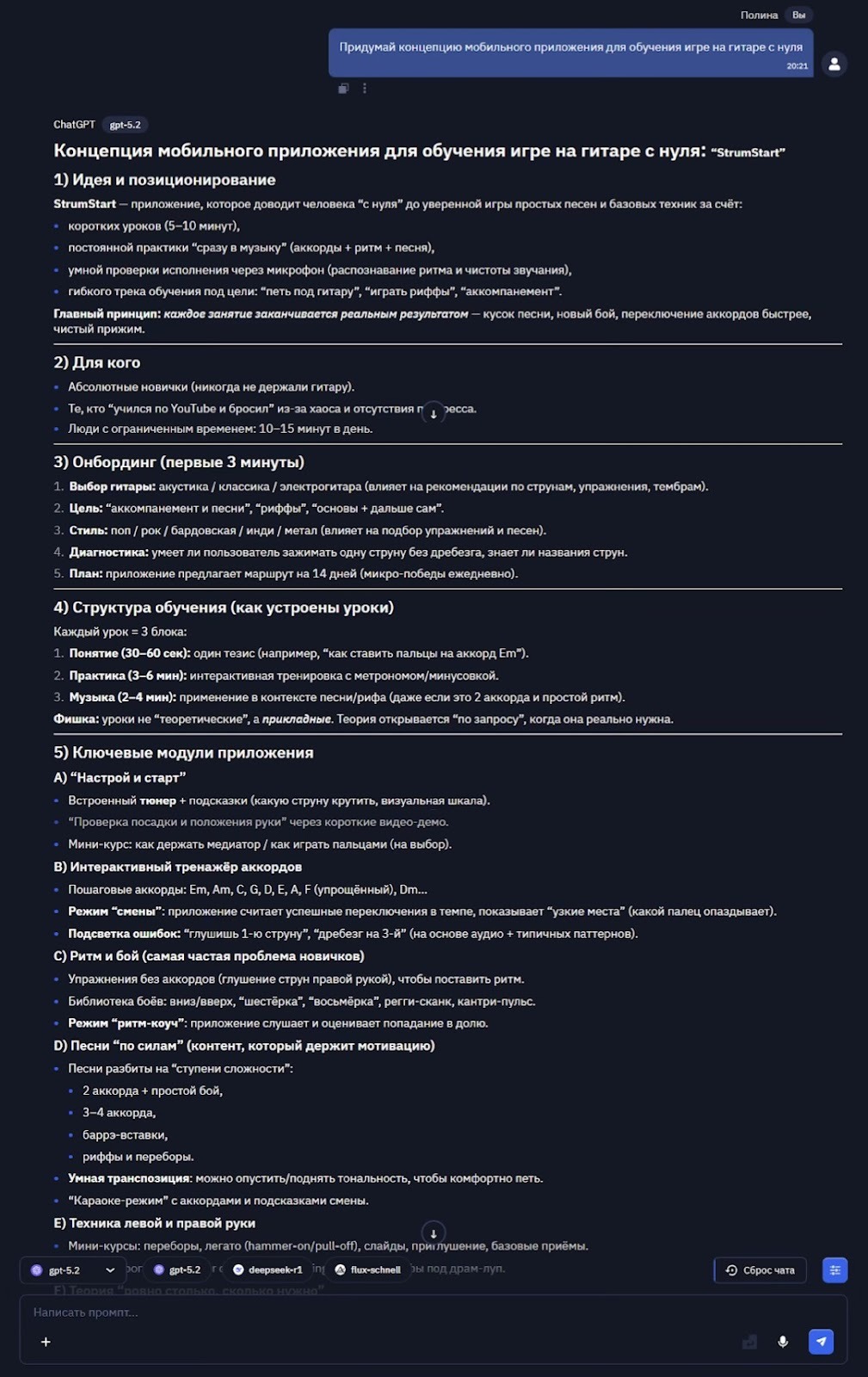 Обратите внимание на то, понимает ли ИИ, что речь идет о его же концепции? Ссылается ли он в ответе на ранее предложенные элементы (уроки, геймификацию)? Хорошая модель интегрирует новый вопрос в существующий контекст, а не начинает тему с чистого листа.