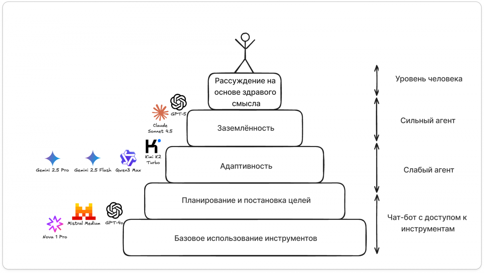 Иерархия способностей агентов, от использования инструментов до здравого смысла, и место моделей ИИ в этой иерархии