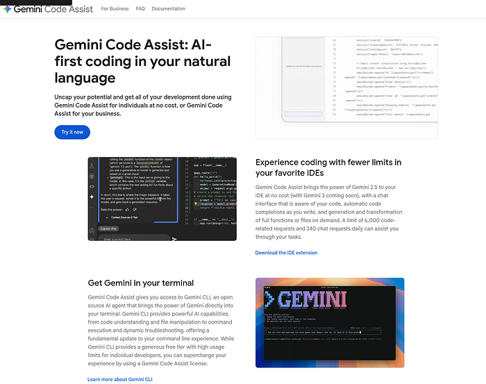 Gemini Code Assist uses the Gemini models to provide context-aware completions, generate full functions or files, write unit tests and debug code within IDEs like VS Code and JetBrains.