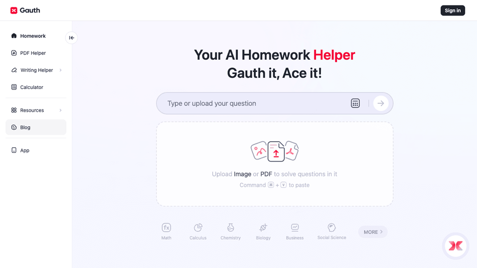 Gauth AI — AI-ассистент для домашки по всем школьным предметам. Изначально проект позиционировался для математики и физики, но теперь охватывает и биологию, экономику, иностранные языки и др.