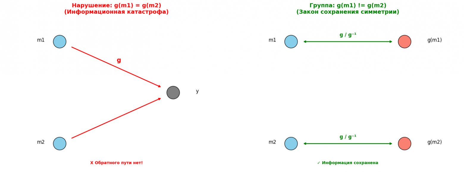 Если мы можем соединять эти схемы последовательно, и для каждой схемы есть противоположная, которая возвращает всё назад (инверсия) — значит мы создали математическую Вселенную, в которой ничто не исчезает бесследно.