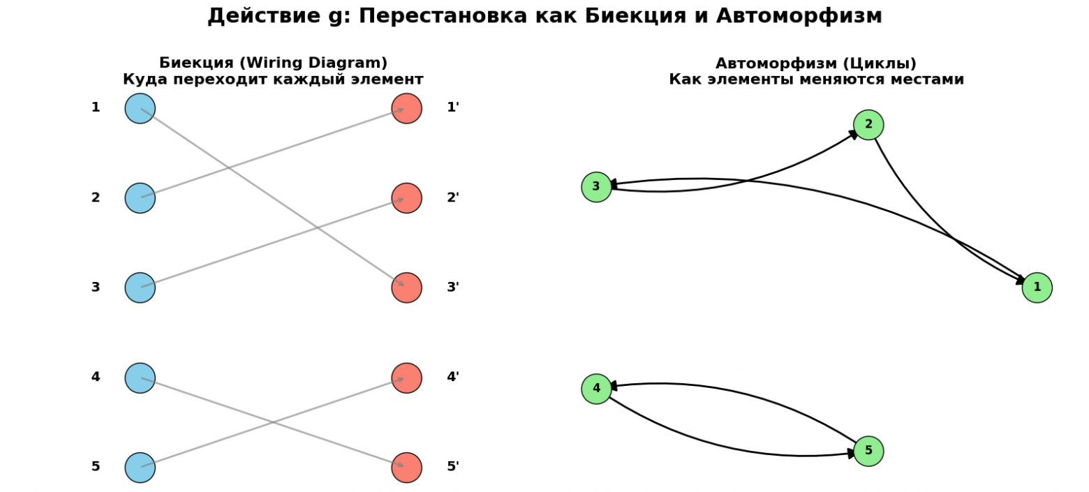 До этого мы смотрели на действия группы как на «пути» (циклы). Это круто для понимания процесса, но иногда нам нужно увидеть структуру самого отображения. Как именно «вход» превращается в «выход»?