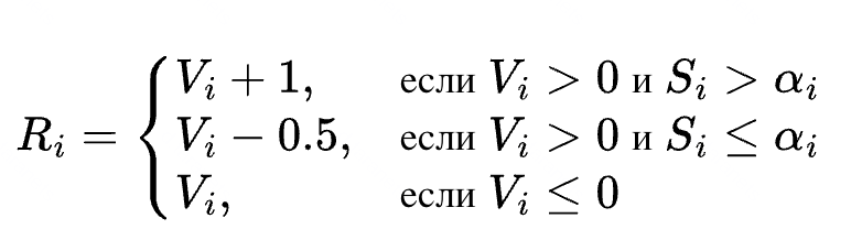 Финальная формула реварда Ri с учетом верифицируемой части Vi и скора ревард модели Si выглядела так: