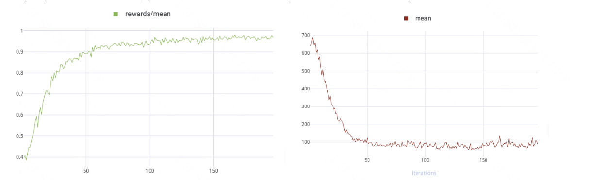 Довольно быстро мы столкнулись с классической проблемой reward hacking: ревард рос, но модель училась не давать хорошие ответы, а подстраиваться под верификационные функции, что видно из резкого падения средней длины ответа.