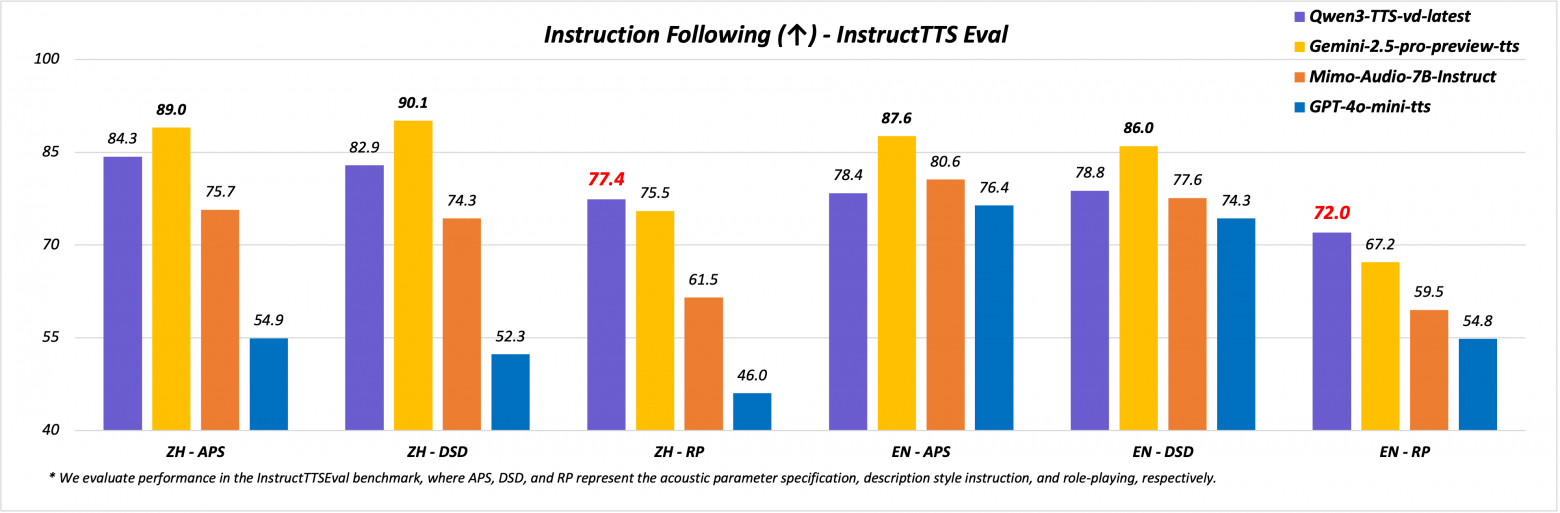 Если же вам нужен синтез новой речи, в дело вступает Qwen3-TTS‑VD‑Flash. Разработчики утверждают, что по некоторым тестам модель превосходит API GPT-4o mini‑tts, а также Gemini 2.5 Pro.