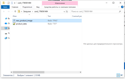 Этот сценарий предназначен для быстрого заведения товаров, которых у нас нет в базе, или для рерайта карточек конкурентов. Идея проста: «Вставь ссылку — получи готовый архив с фото и описанием».