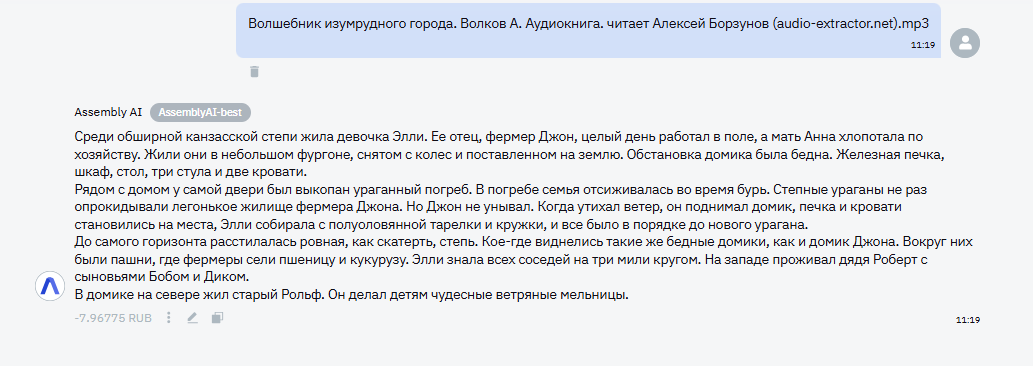 Вы можете загрузить запись длительностью до 60 минут и размером до 30 МБ. Или просто надиктовать голосовое прямо в чат. Разработчики уверяют, чти нейросеть поймёт даже сбивчивую речь с шумом на фоне.