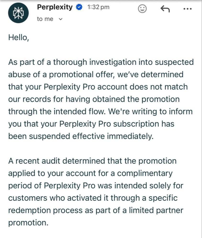 Perplexity начали отключать годовые Pro-подписки, купленные через маркетплейсы, в том числе у пользователей из России.