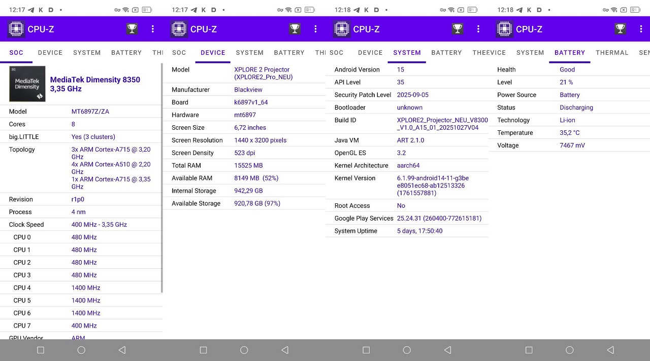 В качестве системы, Xplore 2 использует Android 15 с фирменной оболочкой DokeOS 4.2. В целом, в отличии от HyperOS и других брендовых оболочек, DokeOS отличается лёгкостью: это просто небольшая надстройка над AOSP, которая включает в себя несколько полезных вендорских приложений.