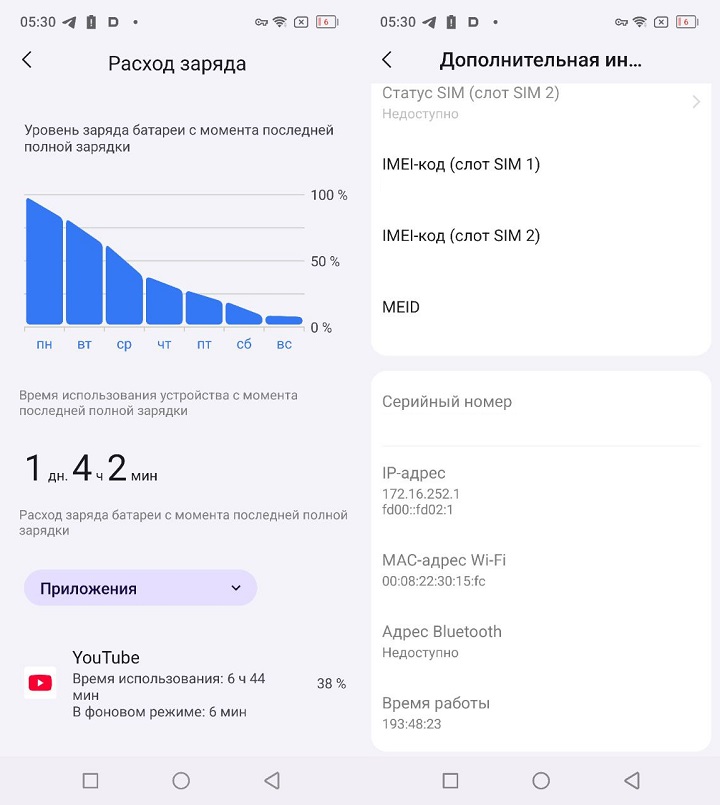 Ёмкий аккумулятор - вторая главная фишка Xplore 2. Здесь установлено два литий-полимерных аккумулятора, общей ёмкостью в 20Ач. Устройство поддерживает быструю 120Вт зарядку: процесс с 0% до 50% занимает около получаса, а с 0% до 100% - 1.5 часа. А вот процесс разрядки... это, конечно, что-то с чем-то. Смартфона хватает примерно на неделю размеренного использования с общим экранным временем в 1 день и ~6 часов. Проценты утекают настолько медленно, что я перестал активно заглядывать в статусбар. Последний раз со мной такое было в школе, с кнопочным Philips Xenium X2300 - и я рад вернуться к смартфону с действительно ёмким аккумулятором!