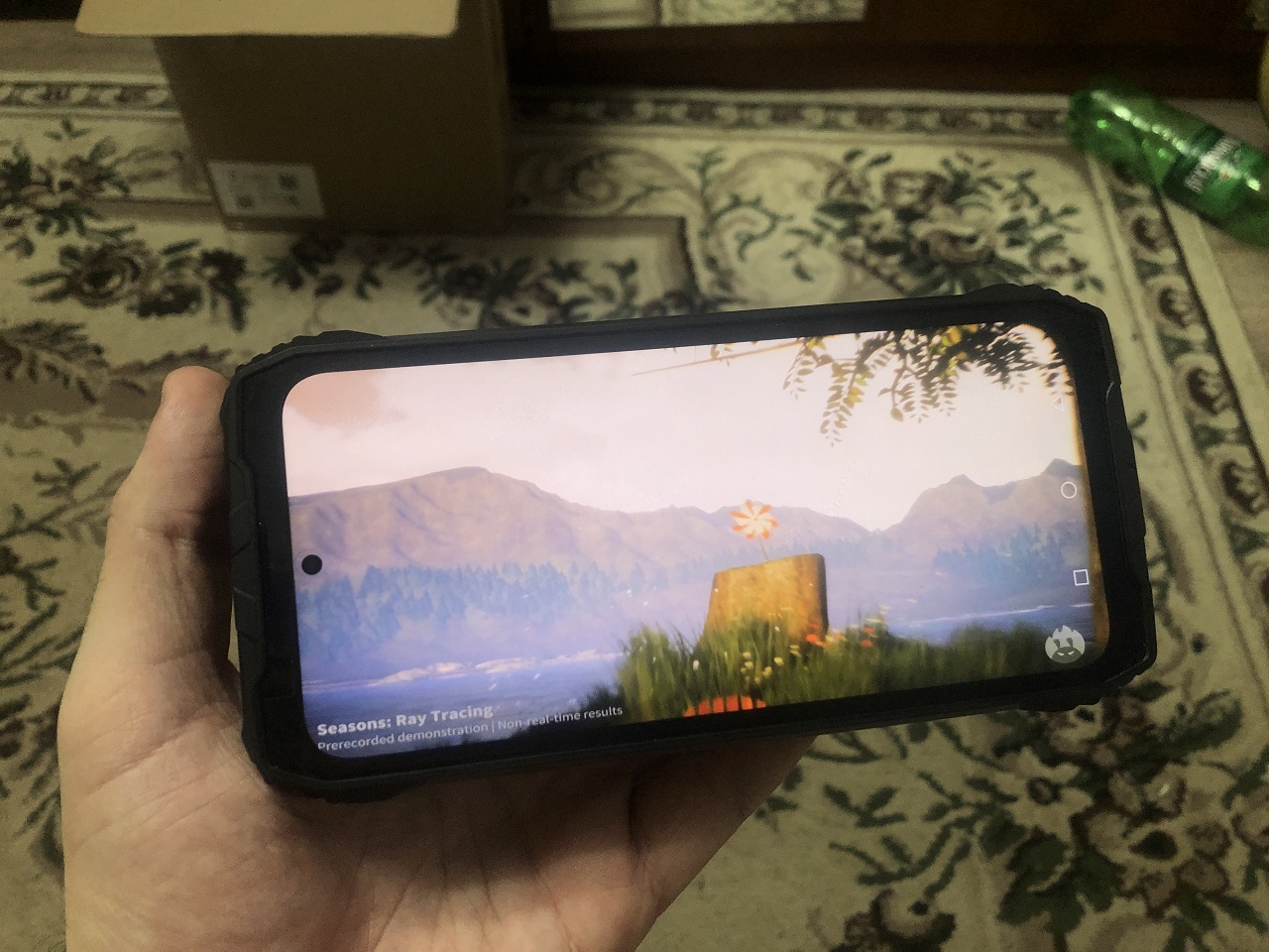 После включения нас сразу встречает одна из главных фишек устройства: прекрасная OLED матрица с разрешением 1440x3200, выполненная по технологии LTPO. К качеству дисплейного модуля не придраться: матрица отлично откалибрована с завода, у неё сочные и натуральные цвета, а также большой запас по яркости. Кроме того, дисплей умеет динамически менять частоту развёртки с 120Гц до 60Гц, чем смартфон активно пользуется для экономии заряда аккумулятора. В качестве стекла используется Corning Gorilla Glass 5 - стандарт для средне-бюджетных защищенных смартфонов.