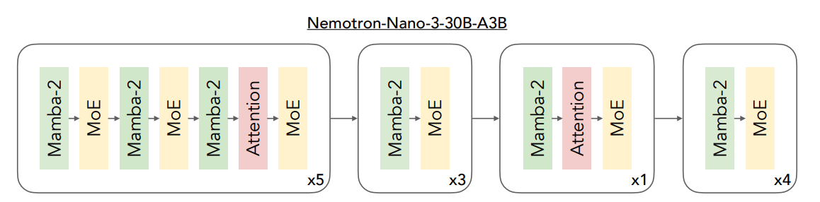 NVIDIA решила занять ещё одну нишу и выпустила семейство моделей Nemotron 3 (не родственник Мегатрона). Флагманы Super и Ultra прибудут только в 2026-м, а пока нам дали «на затравочку» модель Nemotron 3 Nano. И это тот случай, когда архитектура интереснее размера. Инженеры скрестили Mamba (State Space Models) с классическим трансформером и упаковали это в MoE. Получился гибрид: слои Mamba отвечают за огромный контекст (до 1 миллиона токенов!) без пожирания памяти, трансформер — за точность рассуждений, а MoE-маршрутизация — за то, чтобы всё это работало быстро. В цифрах это 3.2 млрд активных параметров (при 31.6 млрд общих), что позволяет модели летать на одном H200 в 3.3 раза быстрее аналогов вроде Qwen3.