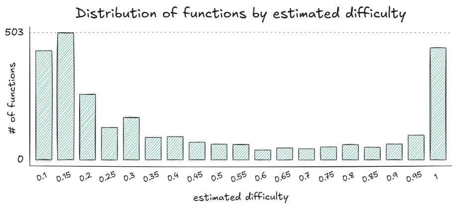 Цель компонента Score заключается в том, чтобы подбирать очередную функцию, самую простую из имеющихся, и передавать её на декомпиляцию Claude. В этом деле Claude уступает человеку, поэтому эффективнее будет тратить время и энергию на те задачи, в решении которых, скорее всего, удастся достичь существенного прогресса. Такой подход, кроме того, помогает заложить основу для декомпиляции более сложных функций, которые обычно обращаются к тем функциям, которые попроще, вызывая их. Понимание подобных зависимостей упрощает работу с более крупными фрагментами программ. Эту идею подкрепляют реальные доказательства, хотя всё устроено не так однозначно, как я изначально предполагал. А именно, 62,7% вызовов идут от более сложных функций к функциям менее сложным.