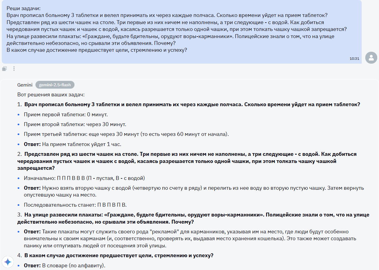 Gemini 3 Flash щелкает эти задачи как орешки, получая везде правильный ответ.