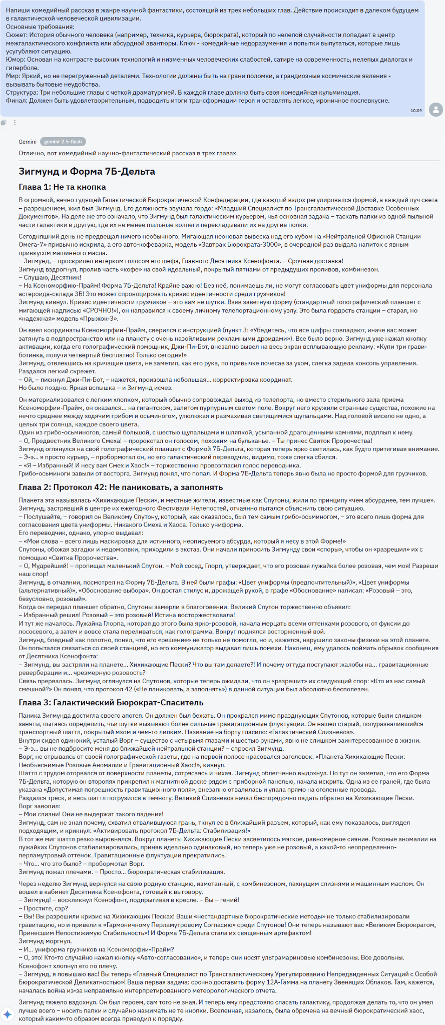 Gemini 2.5 Flash хоть и написал хороший текст, но оформить хоть как-то адекватно комедию не смог. |