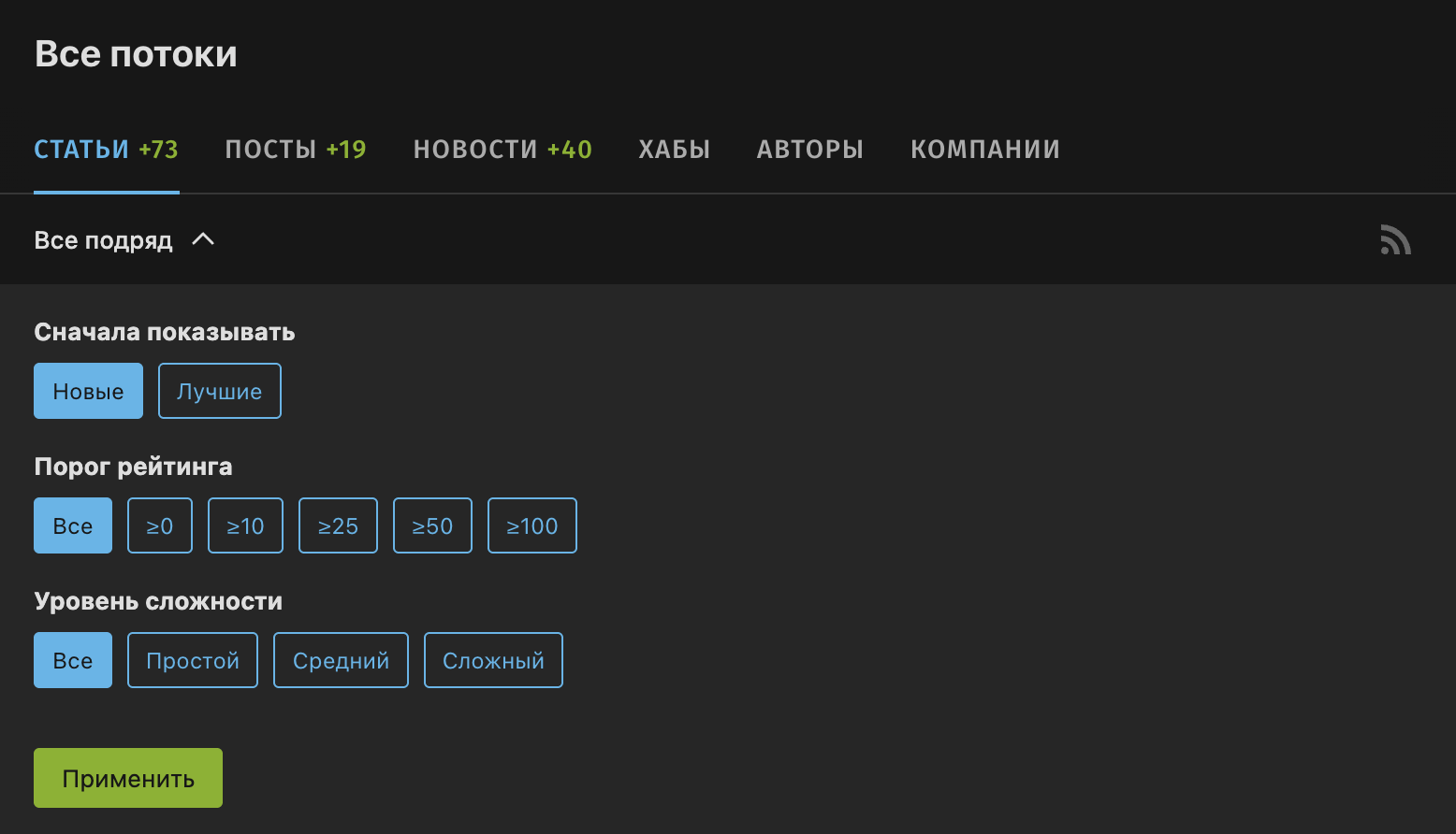 Посмотри на Хабр: черный (60%), темно-серый (30%), синий/зеленый (10%).