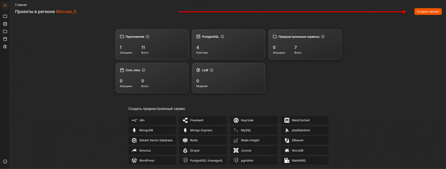 Сразу после регистрации переходим на главную страницу проектов и жмём кнопку в правом верхнем углу - "Создать проект"