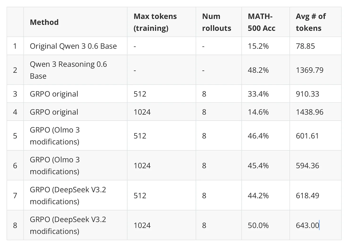 В любом случае, у меня есть базовый скрипт GRPO в репозитории «Build A Reasoning Model (From Scratch)», если вы хотите поэкспериментировать с ним. (Скоро добавлю больше исследований абляции с соответствующими модификациями.)