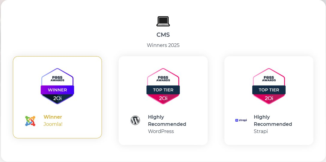 Мероприятие 20i FOSS Awards, организуемое хостинг компанией 20i, призвано помочь в популяризации программного обеспечения с открытым исходным кодом. В этом году определены победители конкурса, и Joomla снова признана лучшей CMS.