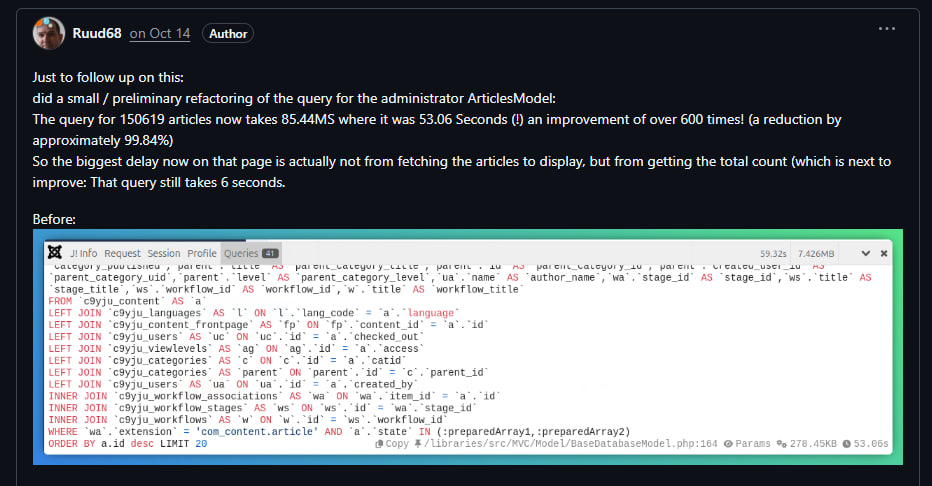 Напомню, что для того, чтобы PR вошёл в ядро Joomla нужны минимум 2 положительных теста от 2 участников сообщества, кроме автора.