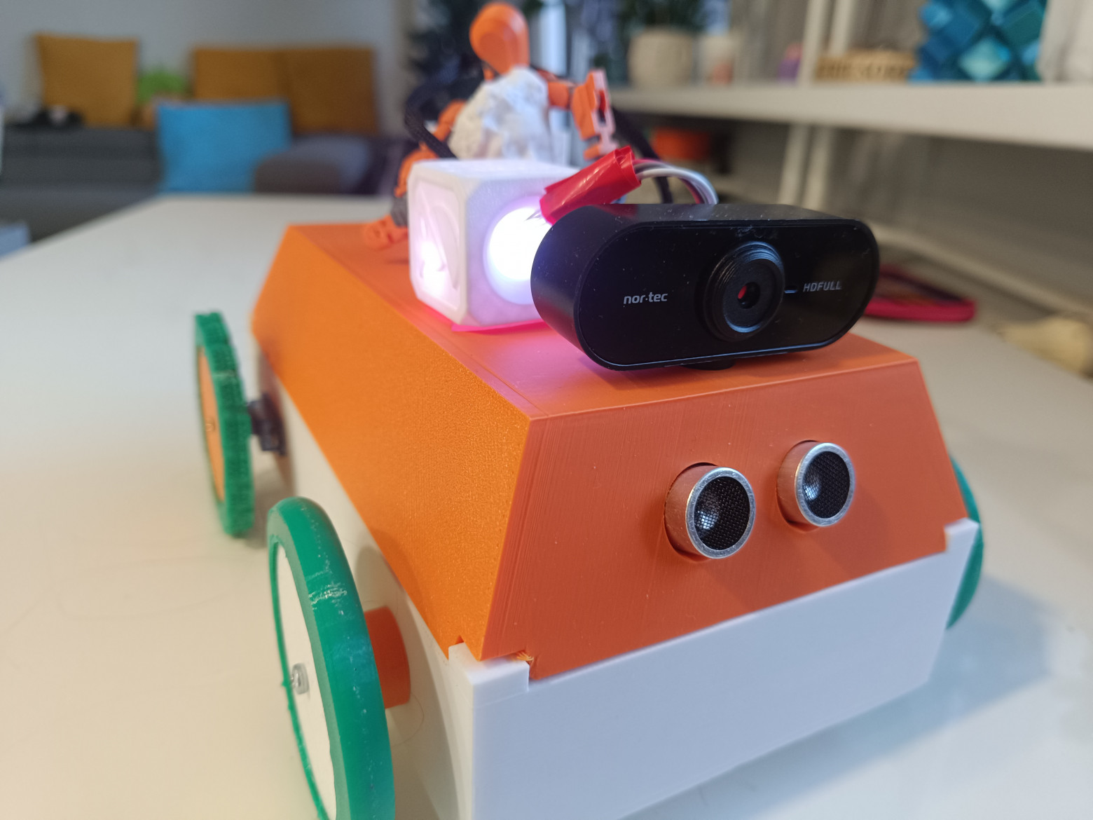 Помните моего робота на Arduino Uno Q с характером? Того, который умел подмигивать и обижаться? Так вот, за пару месяцев он серьезно прокачался. Теперь он не просто ездит и болтает, а: