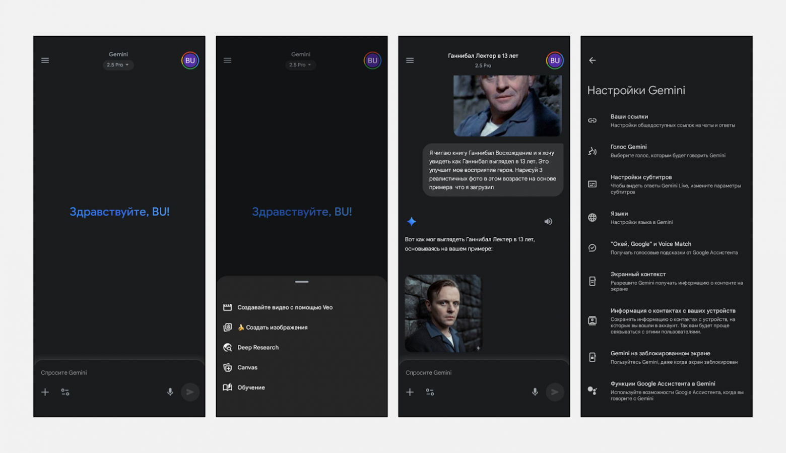 Gemini имеет мобильное приложение, но есть одно «но» — пользователи из России не могут его скачать. Чтобы добраться до установщика, кто-то меняет регион в настройках гугловского аккаунта, скачивает готовые сборки (не рекомендую) и придумывают другие танцы с бубнами. Вы можете найти инструкции в интернете сами, здесь же просто оставлю ссылки на официальное приложение в маркетплейсах.