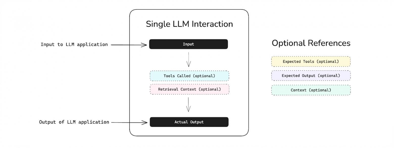 Далее рассмотрим некоторые концепции фреймворка DeepEval, на основе которых можно построить процесс тестирования LLM‑приложения.