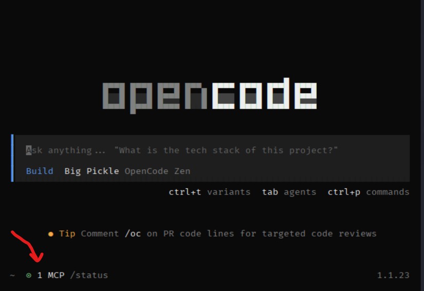 Почти всё. Всё закрываем. Открываем новый терминал, вводим opencode и если мы всё сделали правильно, то увидим: