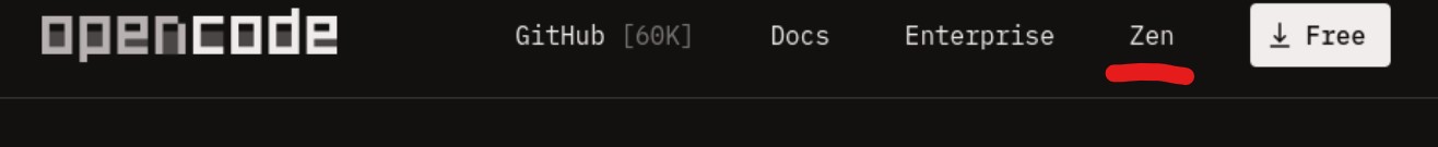 Следующий шаг только для тех, у кого нет платного доступа к каким-то крупным AI-операторам (OpenAI, Copilot, Gemini пр..). Если у вас есть действующая платная подписка, пропускаем этот шаг, если никакой подписки нет, то идём на сайт OpenCode и переходим в Zen.