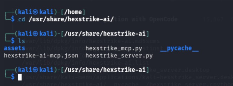 Находим папку где установлен HexStrike AI. У меня (думаю и у вас) он установился в /usr/share/hexstrike-ai/.