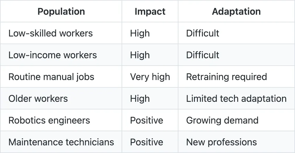 Промышленное обслуживание: Позитивное влияние. Действие: обучение робототехнике.