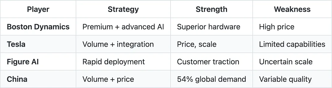 Boston Dynamics и DeepMind делают ставку на качество. Tesla делает ставку на объём. Китай может сделать и то, и другое.