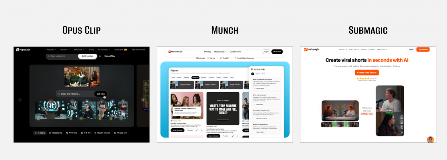 Munch - сверяет ваше видео с топовыми поисковыми запросами и выбирает фрагменты, которые имеют больше шансов собрать охваты в конкретных соцсетях