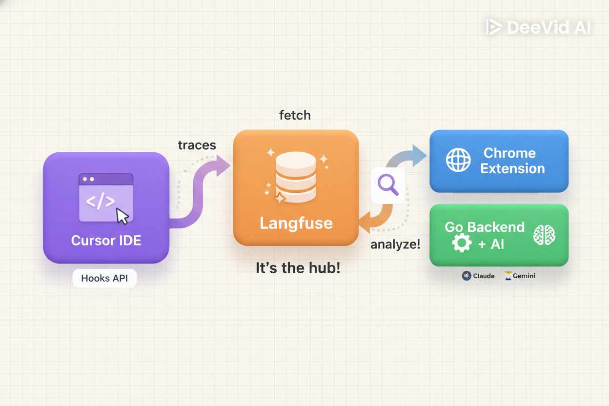 Перехватывает действия AI-ассистента в IDE и отправляет в Langfuse.