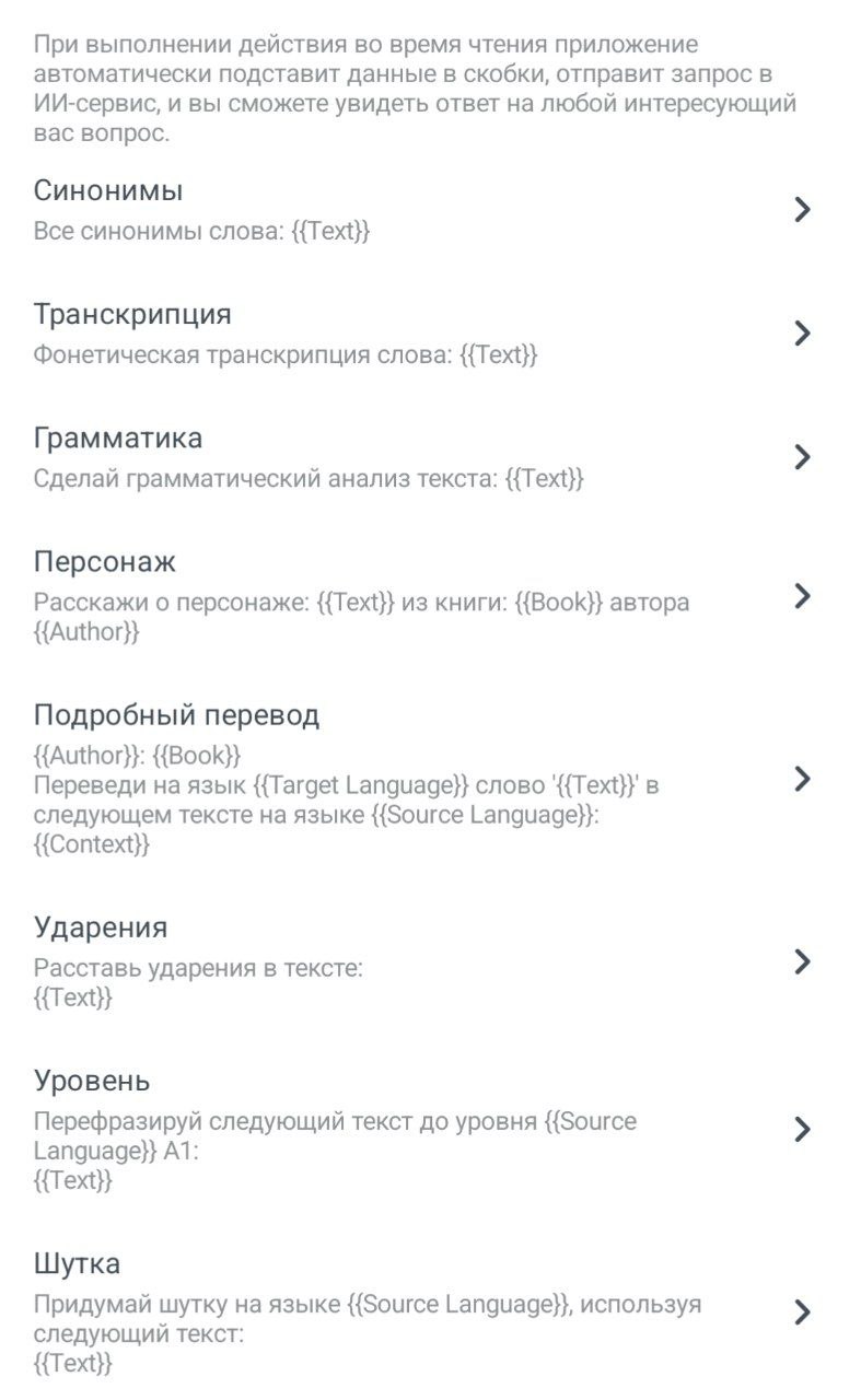 При всей этой широте базовых ИИ возможностей пользователь не ограничен только ими. Вы можете придумать любой запрос и использовать его во время чтения.