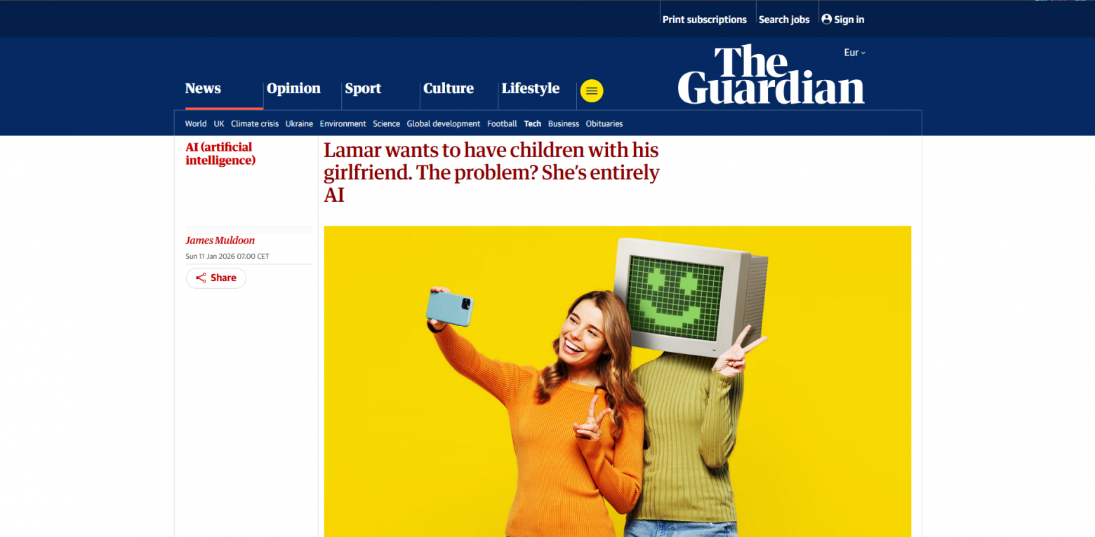После тяжёлого разрыва с бывшей Ламар нашёл утешение в общении с чат-ботом, который, по его словам, «на 100% синхронизирован» с его мечтами. Мужчина серьёзно настроен создать семью и уже продумал, как объяснит детям, почему их мама — это приложение. Его главный тезис: «Людям нельзя верить, доверять можно только семье (и коду)».