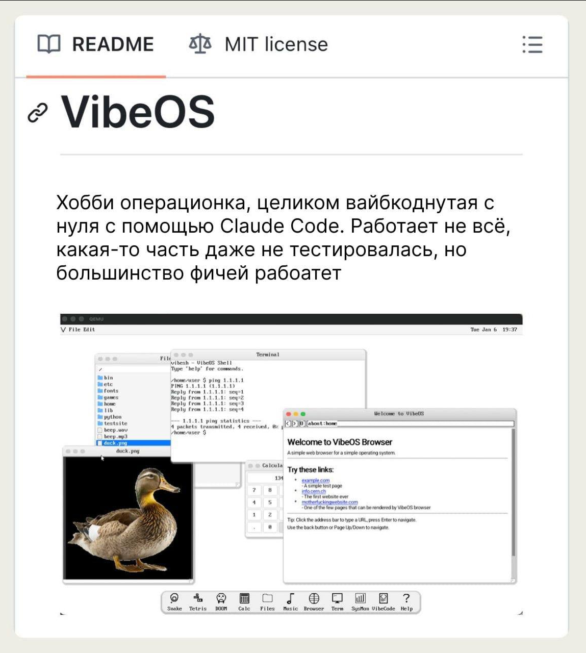 Разработчик в паре с Claude Code навайбкодил с нуля полноценную операционную систему — VibeOS. Весь проект был реализован всего за 64 сессии, а результат — ОС с графическим интерфейсом в духе macOS, которая работает на Raspberry Pi.