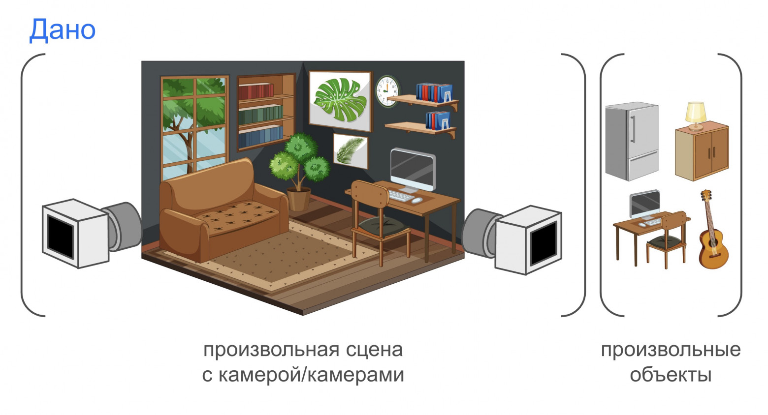 Поэтому нам и нужны дополнительные объекты. Мы будем принимать такие готовые сцены как фундамент нашей работы, константу с фиксированной расстановкой объектов и фиксированным направлением камер — это гарантирует осмысленность и реалистичность как сцены, так и любого рендера через преднастроенные камеры.