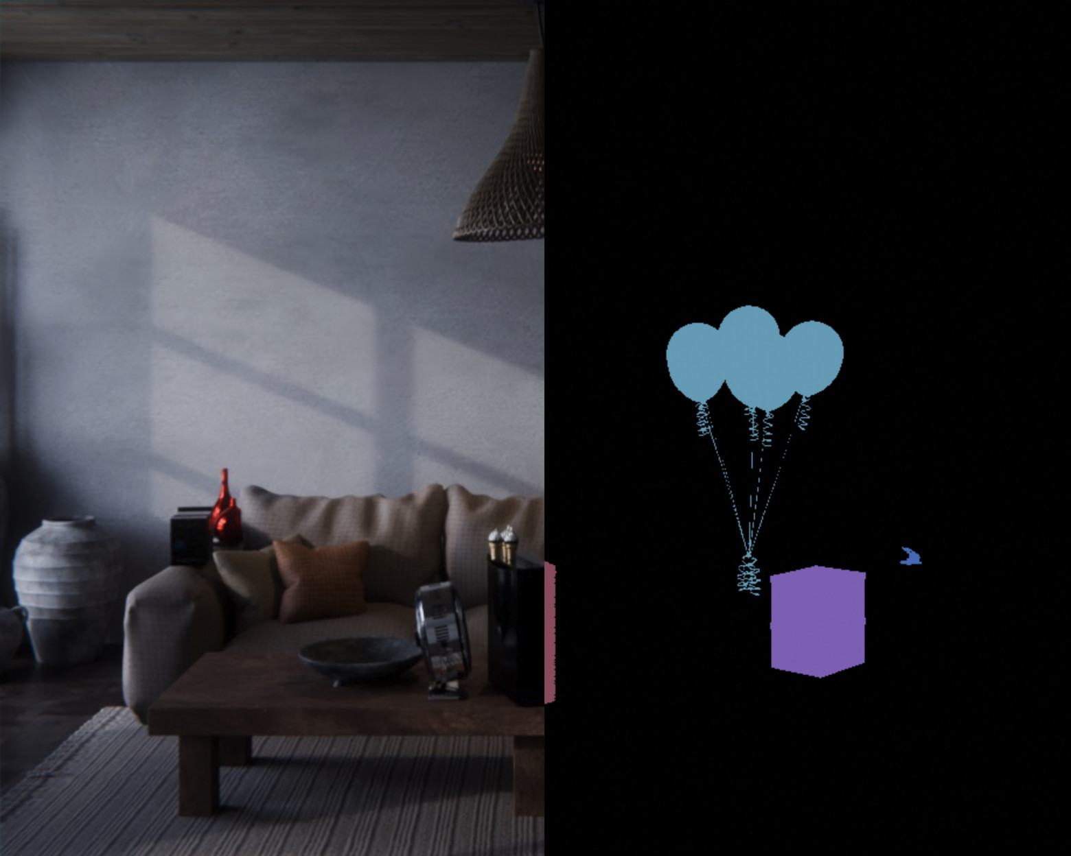 трёхмерность: 3D-движок позволяет получить очень полезные дополнения к каждой картинке: например, точная карта глубины и сегментационная карта — опять же, без помощи ИИ.