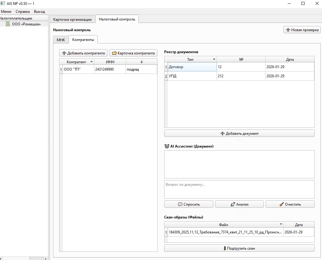 AIS NP задумано как рабочее пространство для сопровождения налогового контроля, где порядок встроен в саму логику программы. Это не просто хранилище файлов, а инструмент, который связывает документы, сроки, события и контекст в единую структуру.
