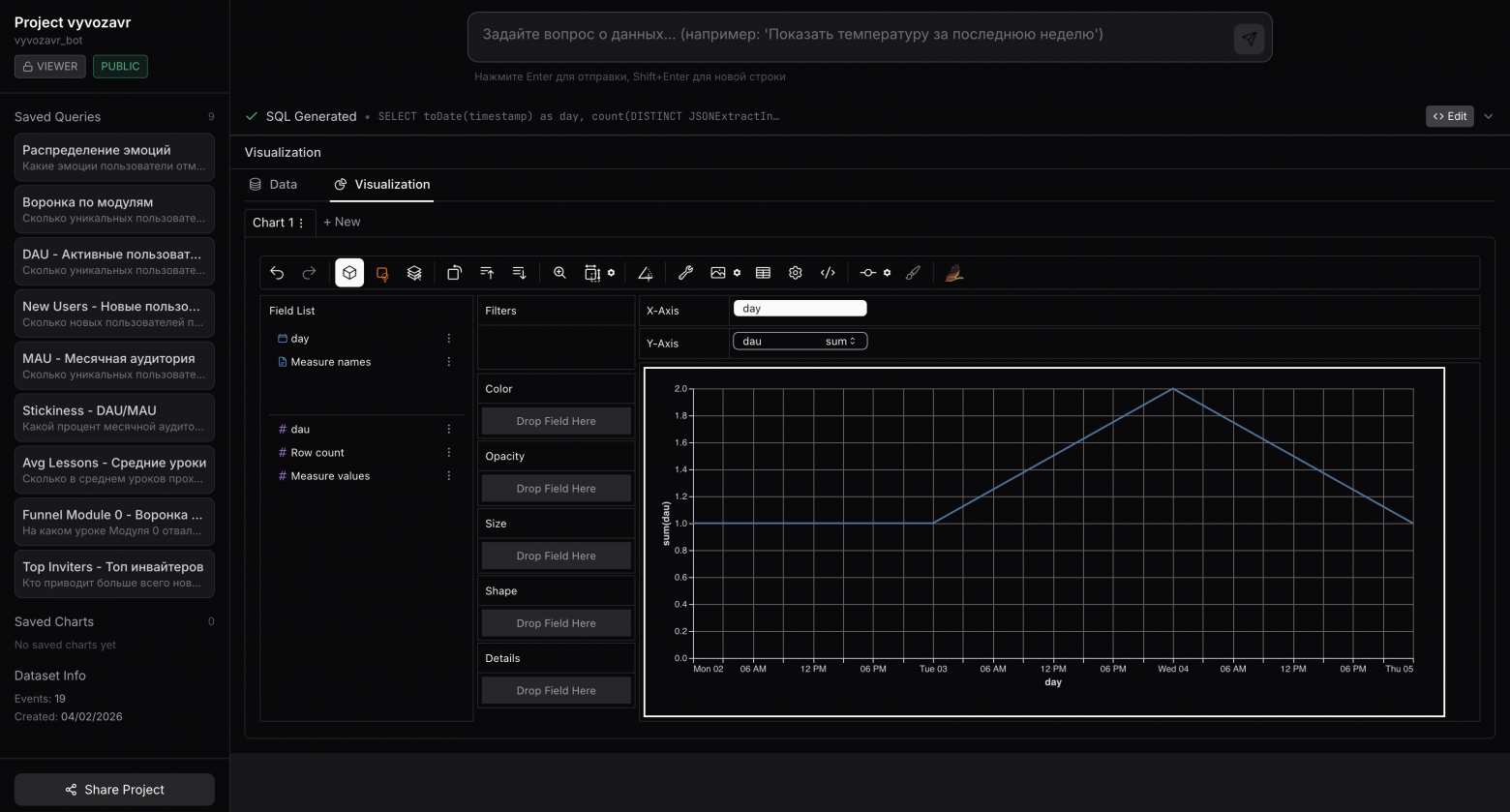 Data Analytics: Chat-to-Data слой (Text-to-SQL) для ClickHouse. Агент сам пишет запросы, фиксит диалект SQL и отдает данные — app.kolkhoz.io