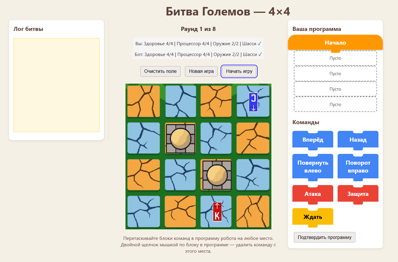 Посражаться с ботами можно по данной ссылке: https://bitvagolemov.prostorobot.ru/games/bg_game_8bit.html