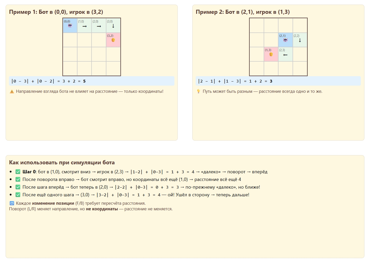 Для оценки «насколько близко враг» бот использует Манхеттенское расстояние: