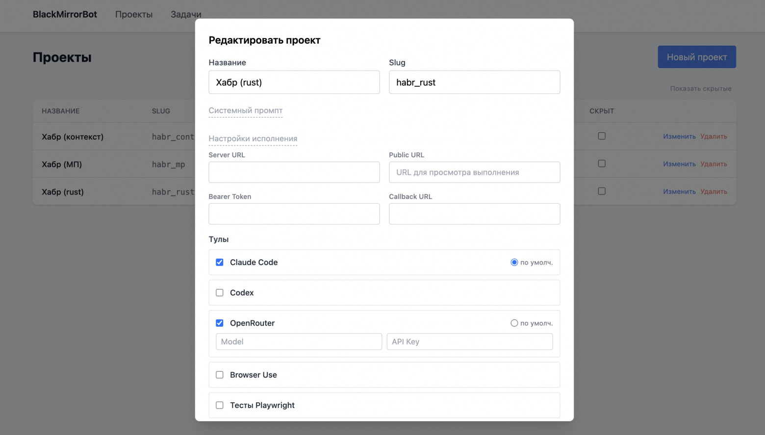 Ок, вот мы положили задачку в нашу базку, и теперь нам надо с ней что-то сделать. Я уже промышленно освоил Claude Code и Codex со всеми их хаками и «бестпрактисами» и в полном восторге, поэтому фактически здесь все сводится к тому, чтобы просто их запустить, прокинуть задачу как промпт и перехватить выход. И да, нужен, собственно, доступ к коду.