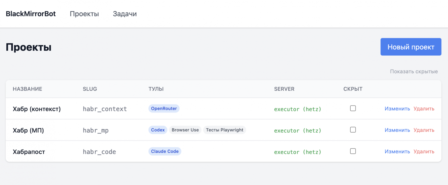 Да, скрывание проектов сделал одной голосовухой специально для скриншотов под хабр — ну кайф же.
