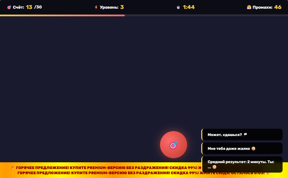 Создай максимально раздражающую, но при этом увлекательную игру. Одним HTML-файлом.