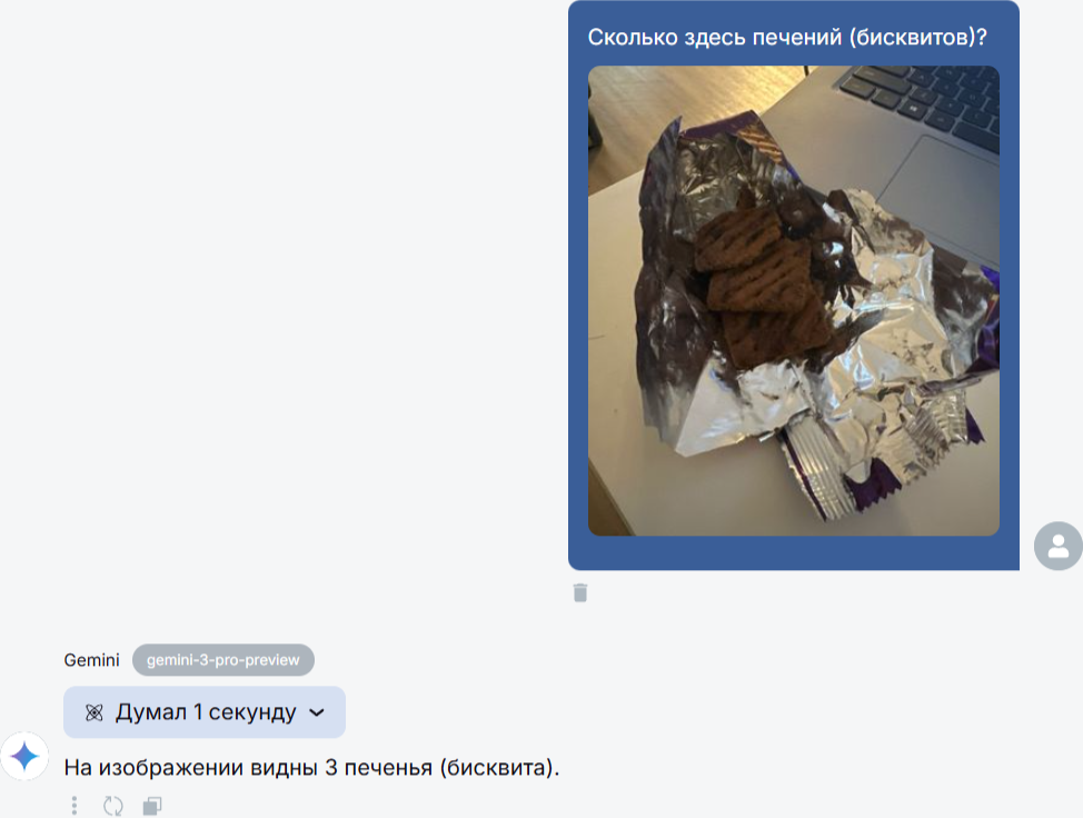 Gemini 3 Pro также остановился на 3 печеньках, без лишних гипотез.