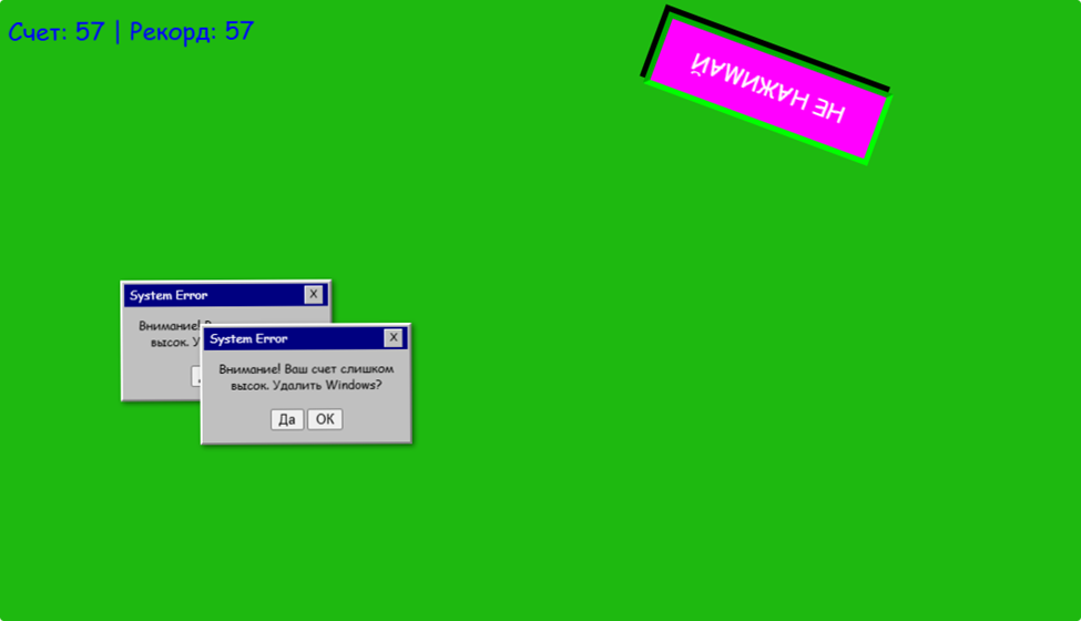 Что касается ChatGPT 5.2, то игра перевыполнила планку “раздражающей”. Она настолько раздражающая, что в неё почти невозможно играть. Каждую секунду выскакивает новое окно, которые нужно закрывать в строгом порядке.